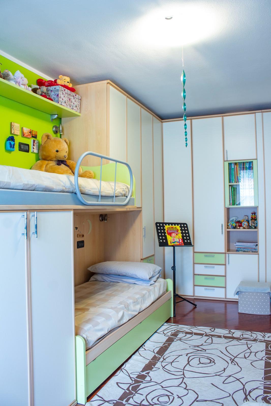 La zona notte comprende una camera matrimoniale, una seconda camera molto ampia con balcone privato, doppi servizi e un pratico ripostiglio.